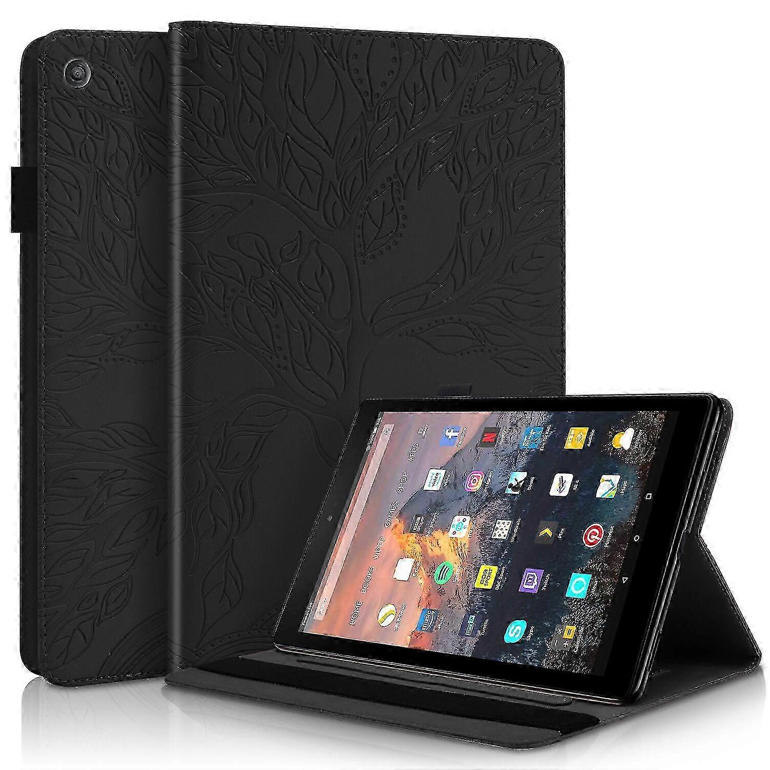For Amazon Fire Hd10 2017/2019 Case, Premium 3D Embossed Tree Pattern Slim PU Leather Folio Cover