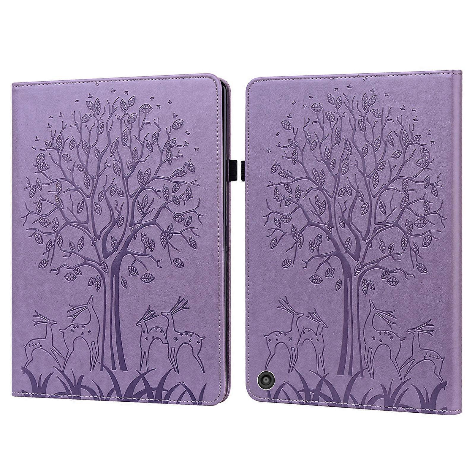 For Amazon Kindle Fire HD 10 / 10 Plus 2021 Tree & Deer Pattern Pressed Printing Horizontal Flip PU Leather Case with Holder & Card Slots