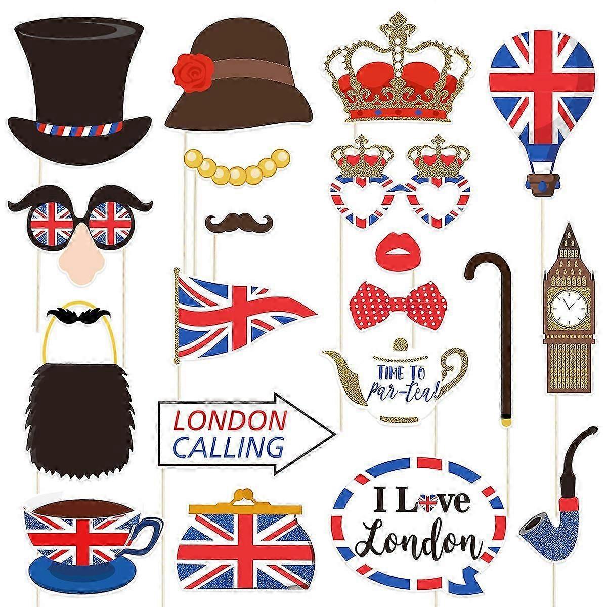 Amosfun 20PCS UK Flag Photo Booth Props for British National Day Party Decorations