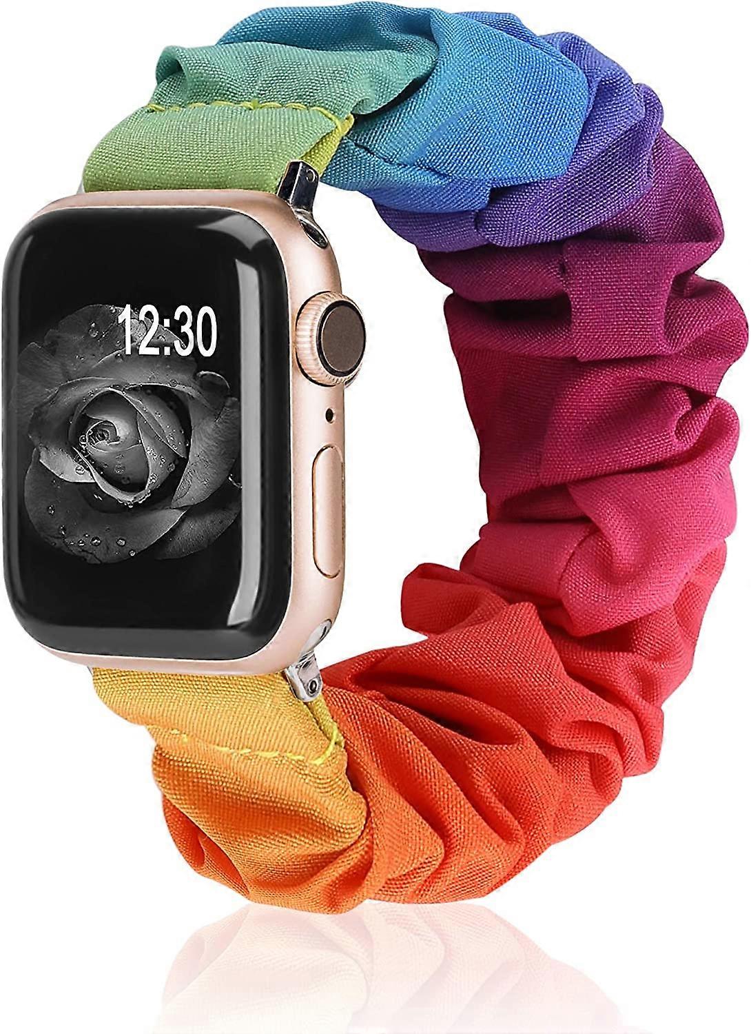 Compatible with Apple Watch Band Scrunchies 38mm 40mm 41mm Cloth Soft Pattern Printed Fabric Bracelet Women Rose Gold IWatch Cute Elastic Scrunchy Ban