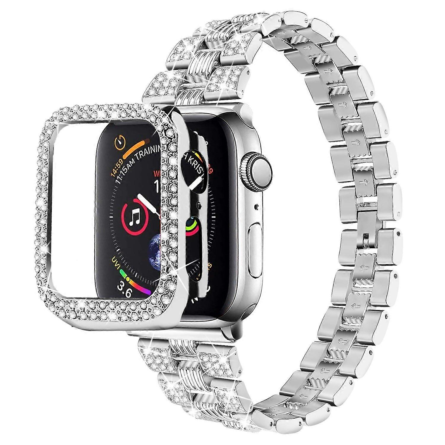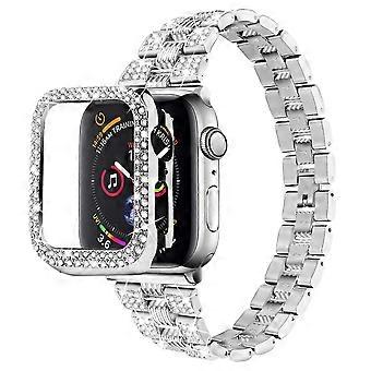 For Apple Watch Series 7 45mm 2-in-1 Design Stainless Steel Rhinestone Thread Watch Strap+Anti-drop