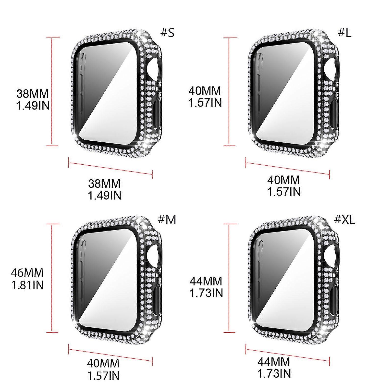 Features: PC material, light and skin-friendly feel, smooth for touch, strong and oleophobic, washable, and the color is new, anti-fall, comprehensive for protection, easy fit, sensitive to for touch. Accurate coverage, sensitive for touch, four corners anti-drop, while protecting the screen. Using high-hardness toughened glass, it is effectively scratch-resistant, wear-resistant, and anti-explosive for protection. The for shell and membrane are integrated, ultra-light and ultra-thin design, easy to fit.Slim and light, it gives your watch a stylish new look. The precise design allows you to easily use all functions without removing the for case. The watch cover features a triple scintillating zirconia stone, for sparkle you all angle with shinning look in every occasion, turns from sporty to elegant and stylish, perfect for upgrading a casual outfit or complementing a luxurious evening look. The watch screen protector is high sensitive with for HD screen clarity, preserving original for touch sensitivity, vivid screen color show without any distortion. Durable hard PC frame watch bumper protect your watch face and edge from scratches, drops and bumps. The snap-on design makes it super easy to install and take off, don'for t need to take off the bands or the for case when charging the watch. Precise corner cutting technology allows access to all controls, buttons, sensors precisely. Specifications: Material:PC+Diamond+Glass S Size: Approx.3.8cm/1.49inch for M Size: Approx.4.2cm/1.65inch L Size: Approx.4cm/1.57inch XL Size: Approx.4.4cm/1.73inch Color:Transparent/Gold/Rose Gold/Pink/Black/Silver for AppleWatch Package Includes: 1x Protective for Case (The watch not included) note: 1.Please allow 1-2cm errors due to manual measurement, make sure that you do not mind before you order. 2.Due to the difference between different monitors, the picture may not reflect the actual color of the item. Thanks for your understandings.