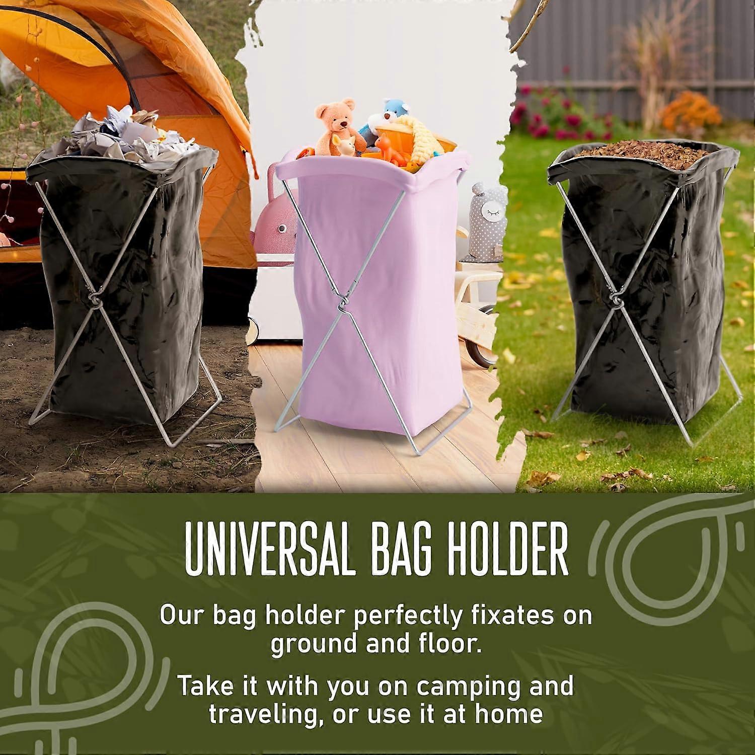 APQ Portable Trash Bag Holder 18x14x32 Inches, Metal X-Frame Stand for 30-55 Gallon Yard Waste Bags
