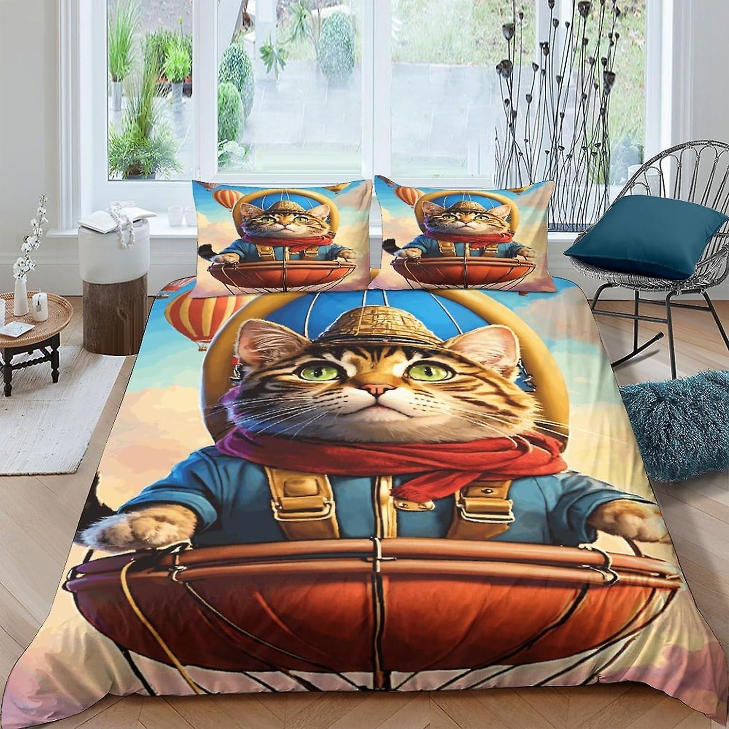 ARIJORJA cat Duvet Cover Set 3D animal Pattern Printe Bedding animal Quilt Duvet Cover SetSoft Microfiber King