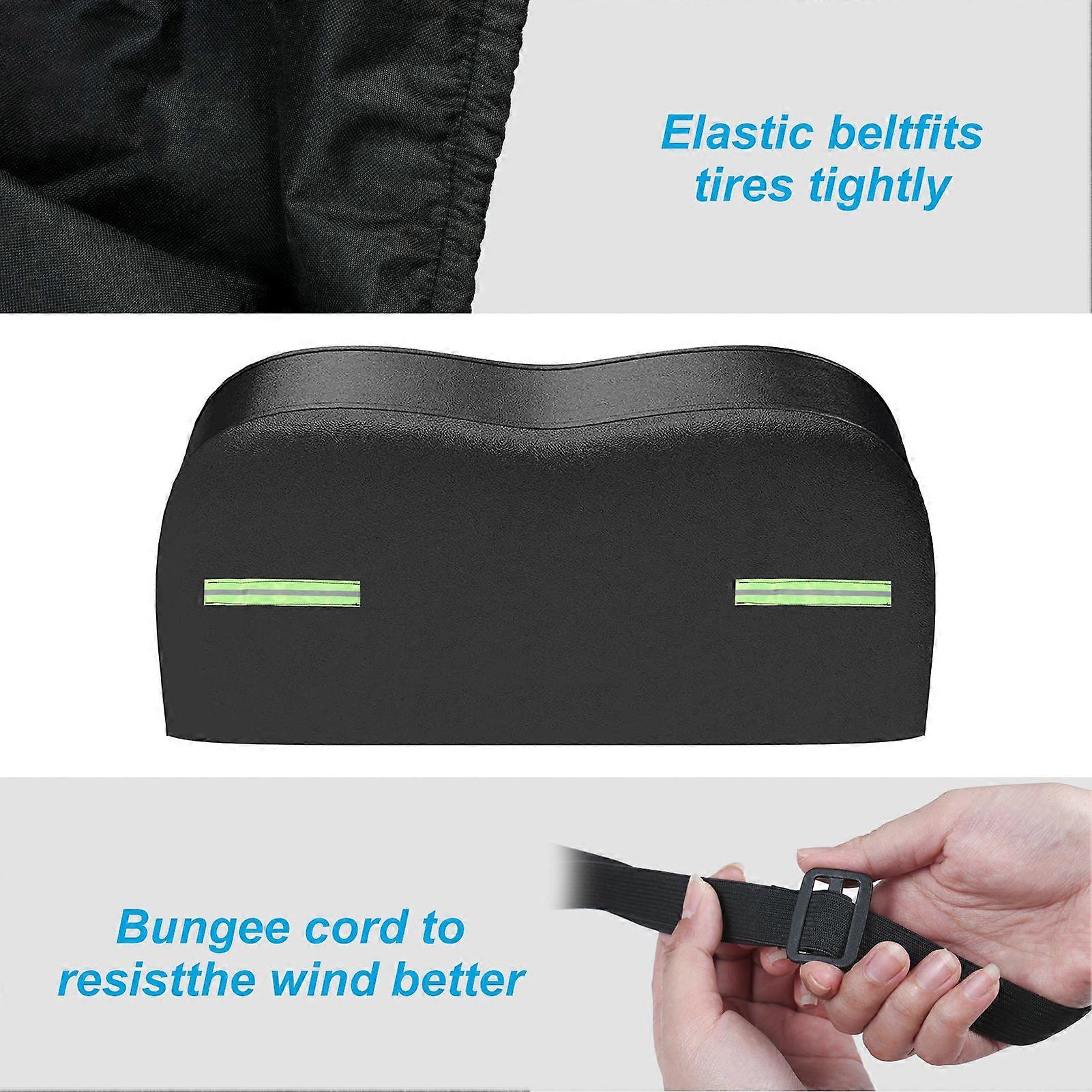 Feature:1. [Function] The two-wheel tire cover is made of heavy-duty waterproof oxford wear-resistant thickened material, and its surface is UV resistant and waterproof to protect the tire from the sun, snow, rust and dust. Keep the tyres in good condition even if the weather is bad.2. [Size] The cover is suitable for all kinds of two-axle wheels with a diameter of 27-30 inches, such as RV, trailer and truck. Please check your two-axle wheel specification before ordering.3. [Easy to use] With high-quality elastic belt and adjustable buckle, you can adjust the appropriate size at any timereflective strips are added on the front to make it convenient for you to find a position at night4. [Firmly fit] Elastic rope can keep the tire cover stable on the tire and not easy to fall off.Specification:[Function] The two-wheel tire cover is made of heavy-duty waterproof oxford wear-resistant thickened material, and its surface is UV resistant and waterproof to protect the tire from the sun, snow, rust and dust. Keep the tyres in good condition even if the weather is bad.[Size] The cover is suitable for all kinds of two-axle wheels with a diameter of 27-30 inches, such as RV, trailer and truck. Please check your two-axle wheel specification before ordering.[Easy to use] With high-quality elastic belt and adjustable buckle, you can adjust the appropriate size at any timereflective strips are added on the front to make it convenient for you to find a position at night[Firmly fit] Elastic rope can keep the tire cover stable on the tire and not easy to fall off.Specifications:Material: OxfordColor: BlackPackage size:40*28*10cmPackage weight:1.1kgPacking list:1pc/2Pcs Tire cover1*Storage bag(free gift)Package List:1pc/2Pcs Tire cover1*Storage bag(free gift)