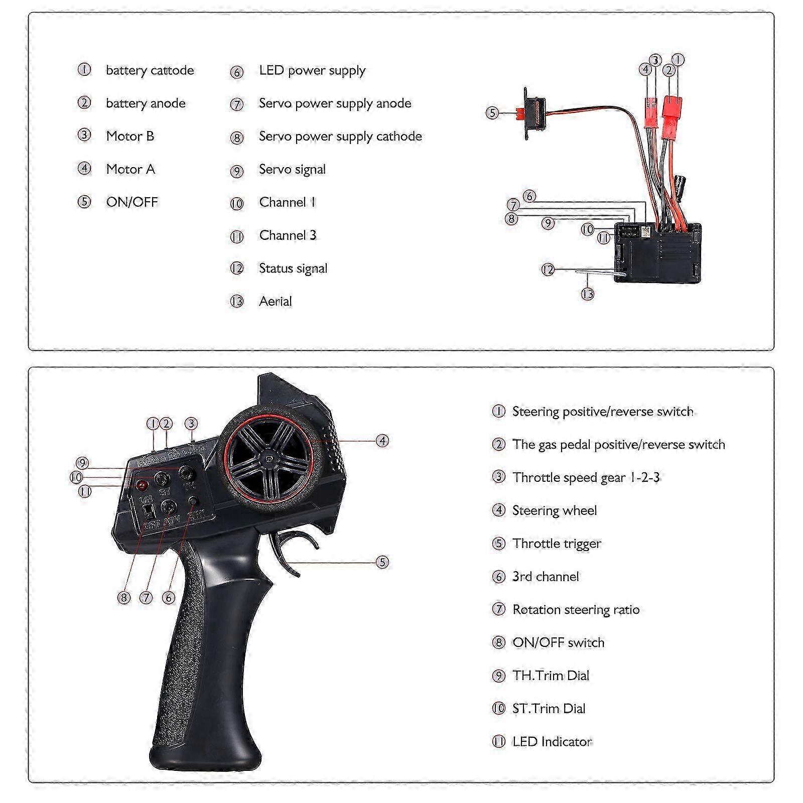 AUSTAR AX-7S 2.4G 3CH Transmitter Remote Controller with 2 in 1 Receiver ESC for 1/14 1/16 1/18 1/24 1/28 1/32 RC Car RC Boat