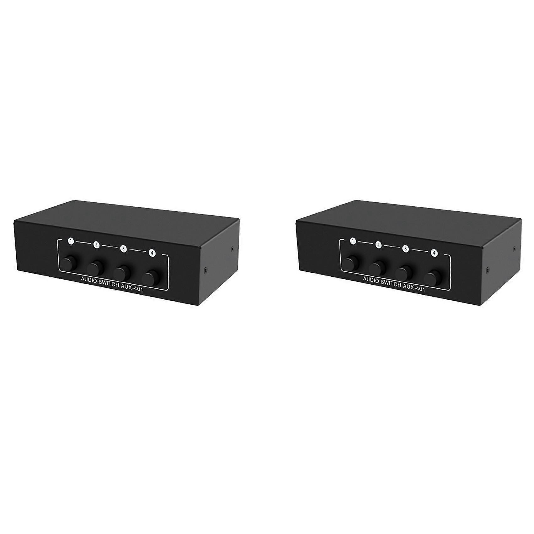 Features: Supports 4 inputs to 1 output audio switcher Supports easy switch via button Supports lower power consumption Supports 3.5mm aux or l/R in and out Easy to install and simple to operate The 4 x 1 Stereo Audio Selector Switcher is a high performance switcher. It is Perfect for distributing stereo audio signals from PC, laptop, TV, VCR, DVD, satellite receivers. size: 141 x 74 x 39MM Material: Metal button hat colour: Package Contents: 2 x AUX Audio Switcher Only the above package content, other products are not included. Note: Light reflection and different displays may cause the color of the item in the picture a little different from the real thing. The measurement allowed error is +/- 1-3cm.