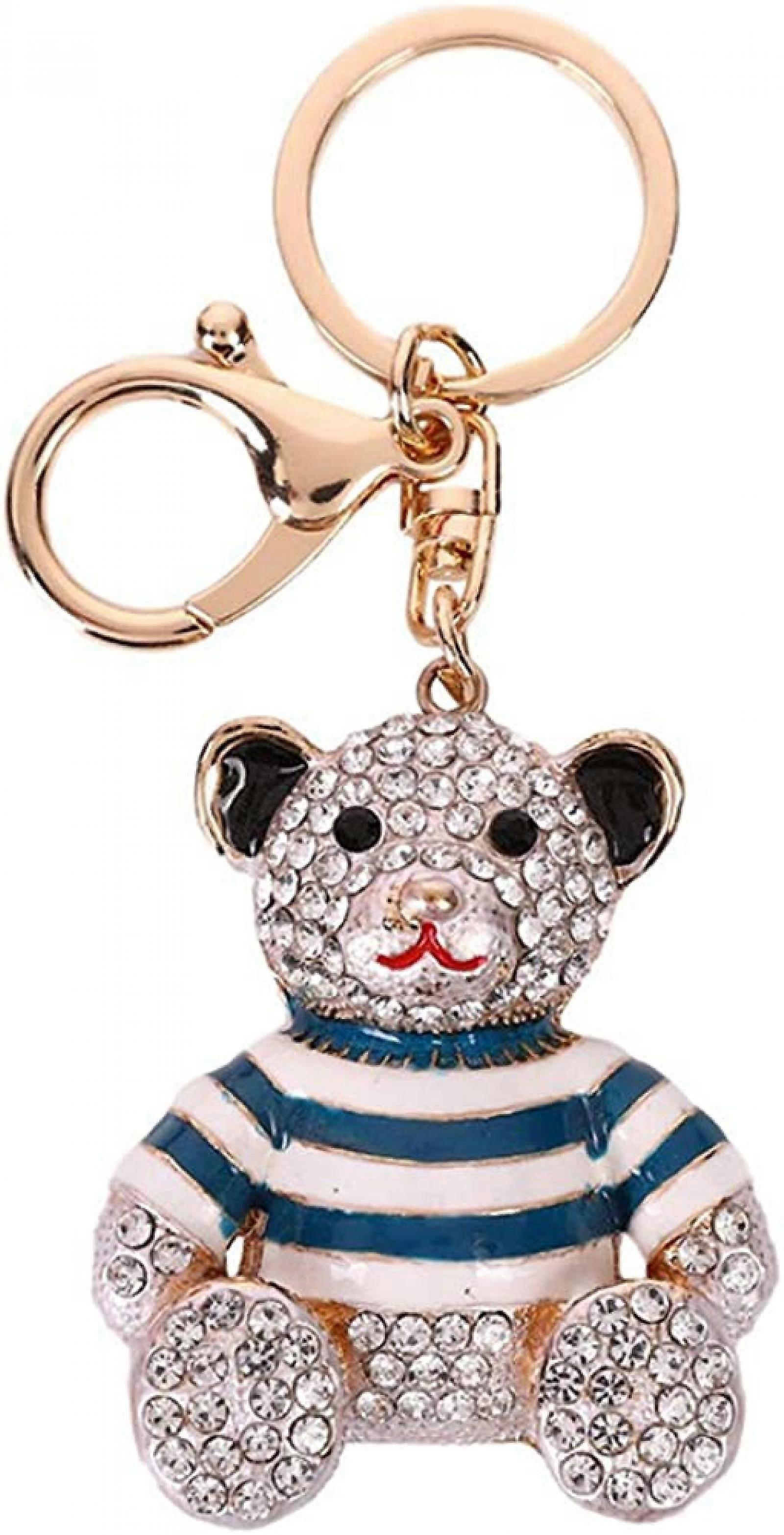 Lobster Clasp closure PRODUCT SIZE: 2.4"H*2.0"W(6cm*5cm),Weight:About 60g,Package include: 1 keychain. HIGH QUALITY SPARKLING RHINESTONE & RUST RESISTANT ALLOY CONSTRUCTION: The trendy and fashion forward bling Rhinestone little bear keyring decoration is made from premium rust resistant metal alloy and covered in high quality shiny rhinestone crystals. This cute yet elegant gold-tone metal keychain is resistant to pulling and the lobster clasp will keep it secure on your keys, backpacks, purses, clothing and more without worrying about it breaking off and makes a beautiful fashion statement. UNIQUE DESIGN: Creative design,very fashionable keychains,make you look different.Beautiful and stylish,corrosion resistant,sturdy and well made,exquisite workmanship,very durable,unique shape,shiny metal,lightweight and portable. BEST CHOICE: It is not only a key ring,but also the other decoration,Suitable for Handbag decoration,wallet pendant,phone decoration,bag decoration,car decoration or key decoration. IDEAL GIFT: It can be given as a perfect gift to girlfriend, couples, friends and children,for Valentine's Day,Mother's Day,Thanksgiving,Christmas and Graduation Ceremony.