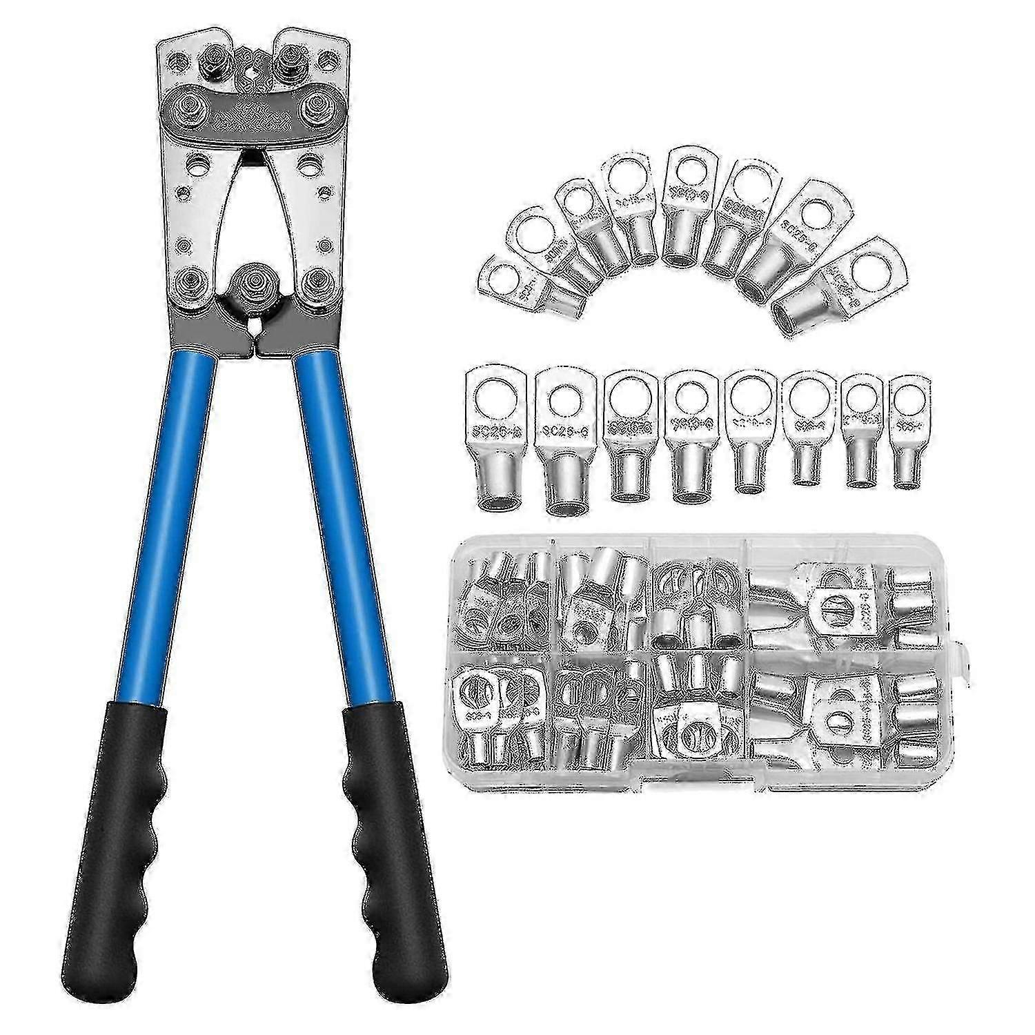 Battery Cable Lug Crimp Tool For Awg 10, 8, 6, 4, 2, 1 Terminal Without Wire Cutter, With 60 PCS SC Terminal-yg