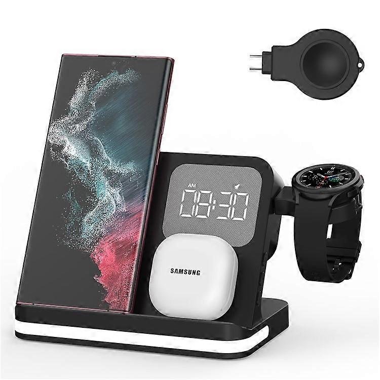 B-22 3 in 1 Wireless Charger 15W Charging Station Compatible For Samsung Galaxy Phone / Watch / Buds with Alarm Clock