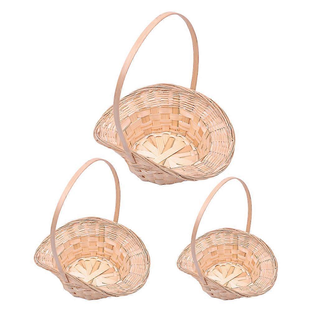 Bamboo Handle Basket Multi-Function Egg Basket 3Pcs Household Fruit Baskets