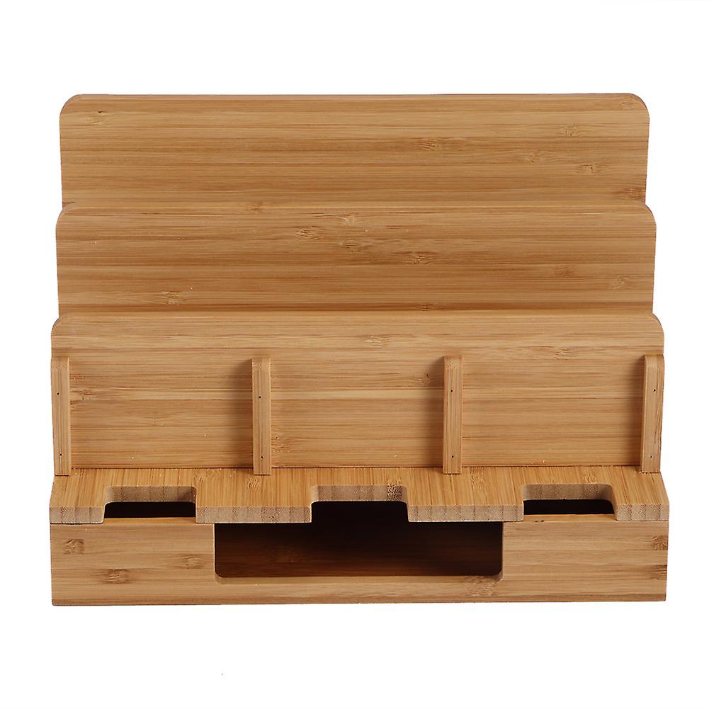 Bamboo Mobile Phone Tablet Computer Charging Rack Stand Storage Organizer for Home Office Table