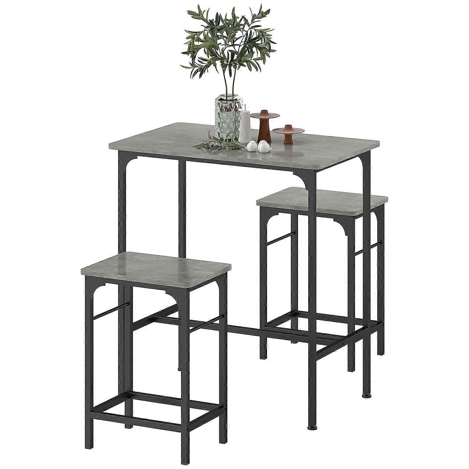 Barbordsset Barbord med barstolsset Matbord med 2 stolar med halkfri fotdyna Grå