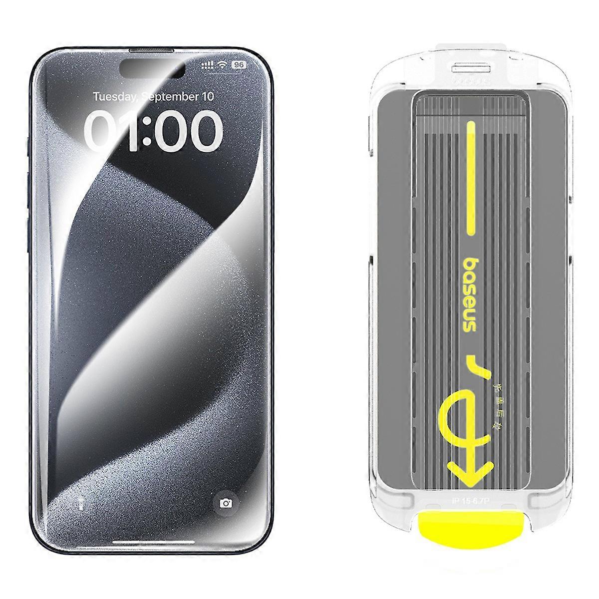 BASEUS For iPhone 15 Pro Max Heat Curved Screen Protector Anti Spy Tempered Glass Film with Dust Fil