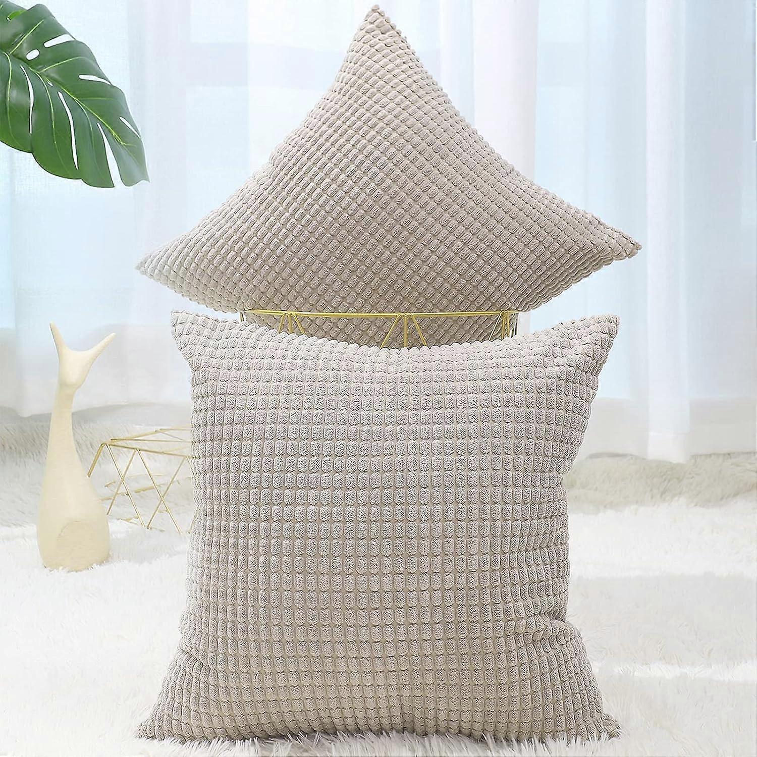 BEBEN Throw Pillow Covers, Decorative Pillow Covers 26X26, Set of 2 Soft Corduroy?Square Cushion Case Home Decor,Khaki, 26X26