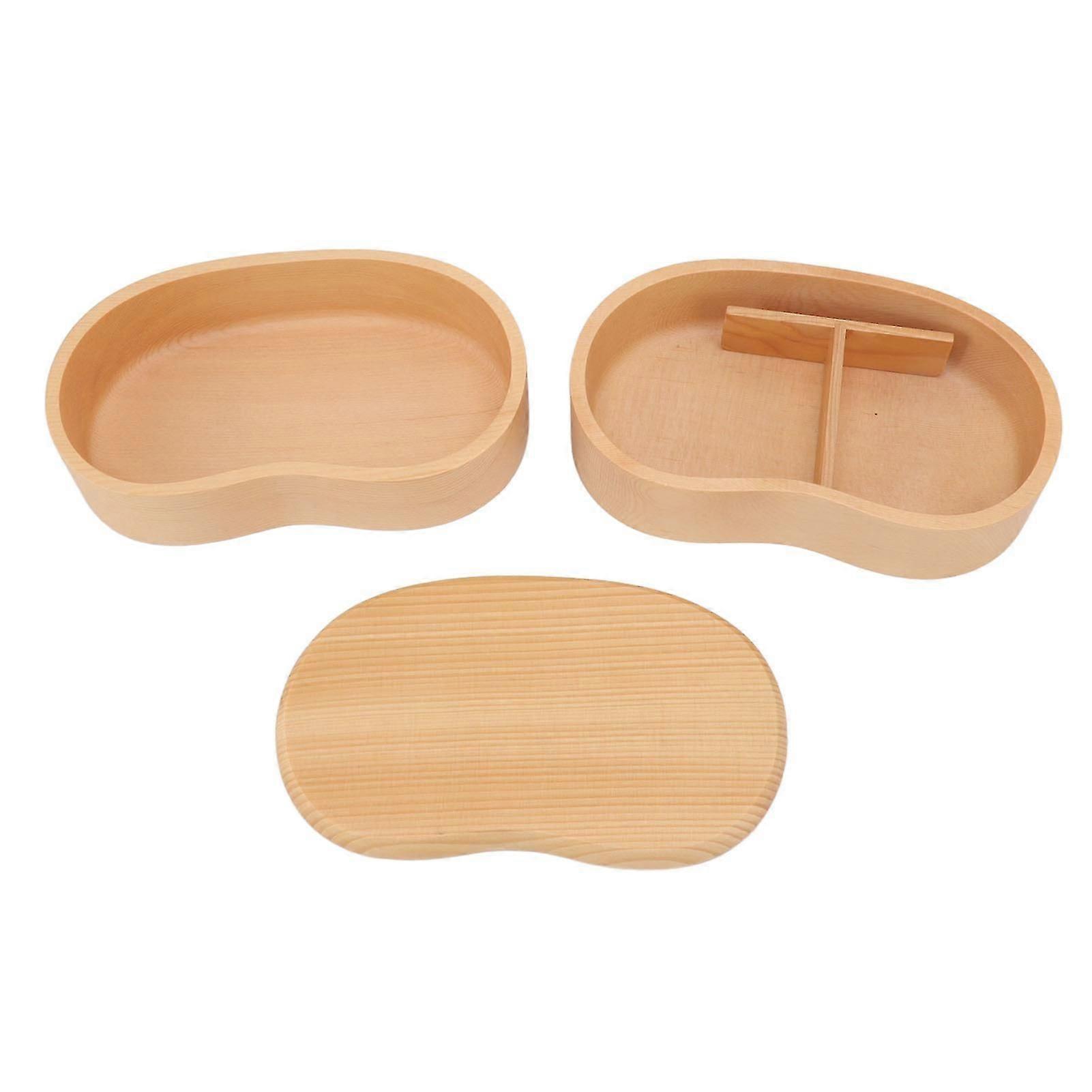 Bento Box Double Deck Wooden Lunch Container with Removable Partition for Students and Office Workers