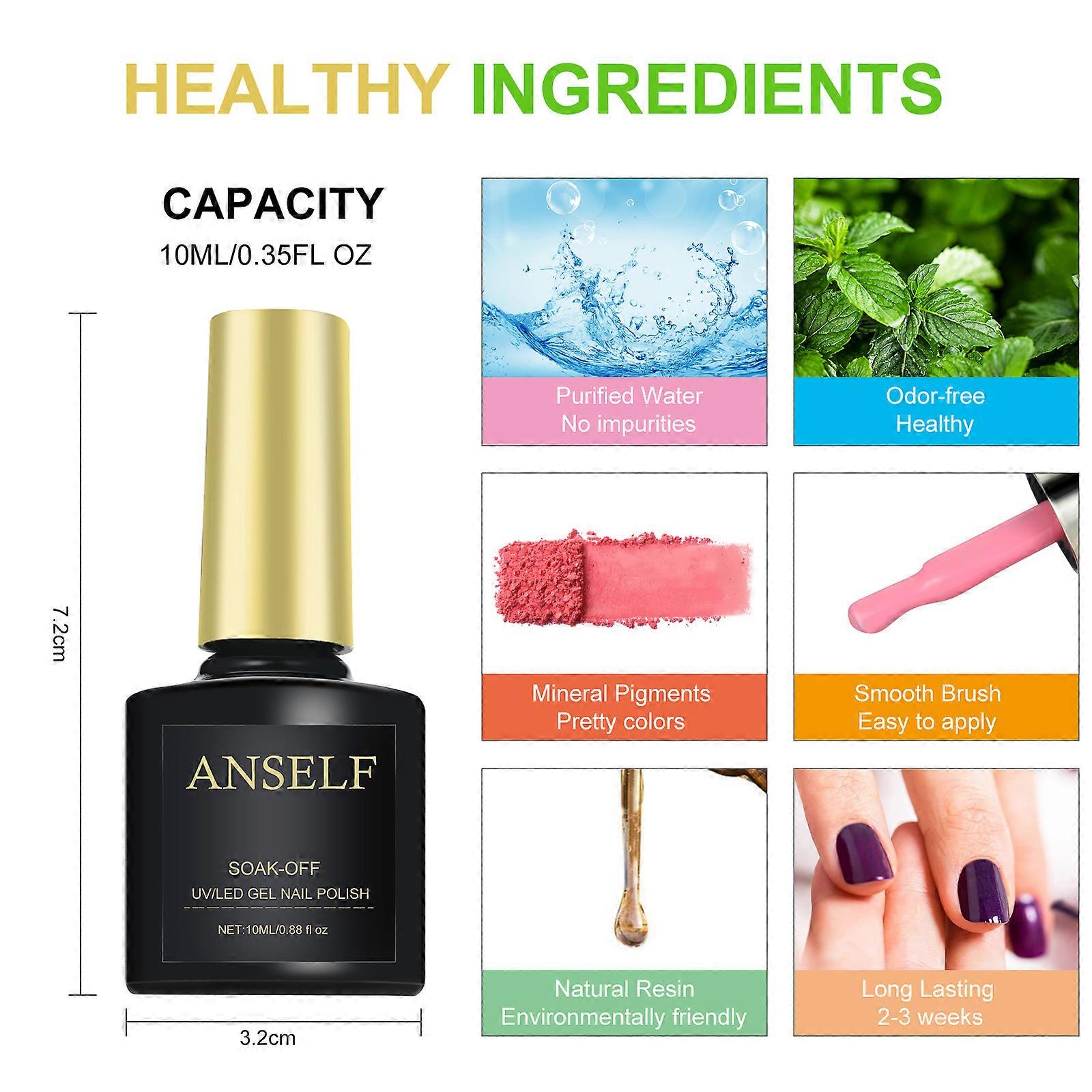Bestauty Anself 15PCS/Set Gel Nail Polish Set Base Coat Top Coat 12 Colors Odorless Long Lasting Nail Polish Kit