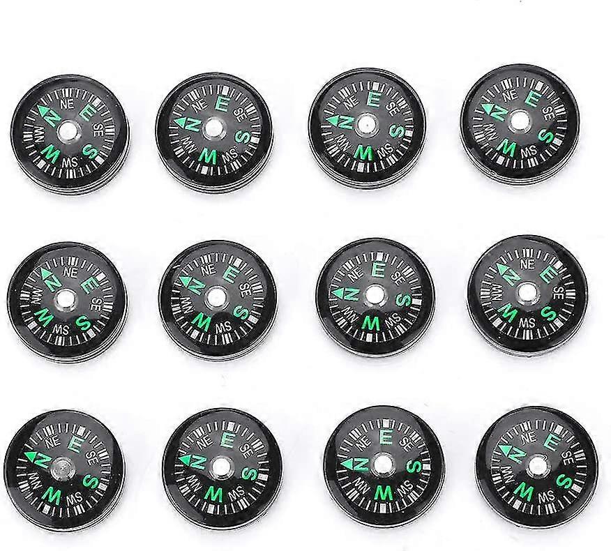 Betterlifefg-12pcs 20mm Mini Compass Portable Plastic Survival Compass For Hiking/Travel/Camping/Wildlife/Navigation