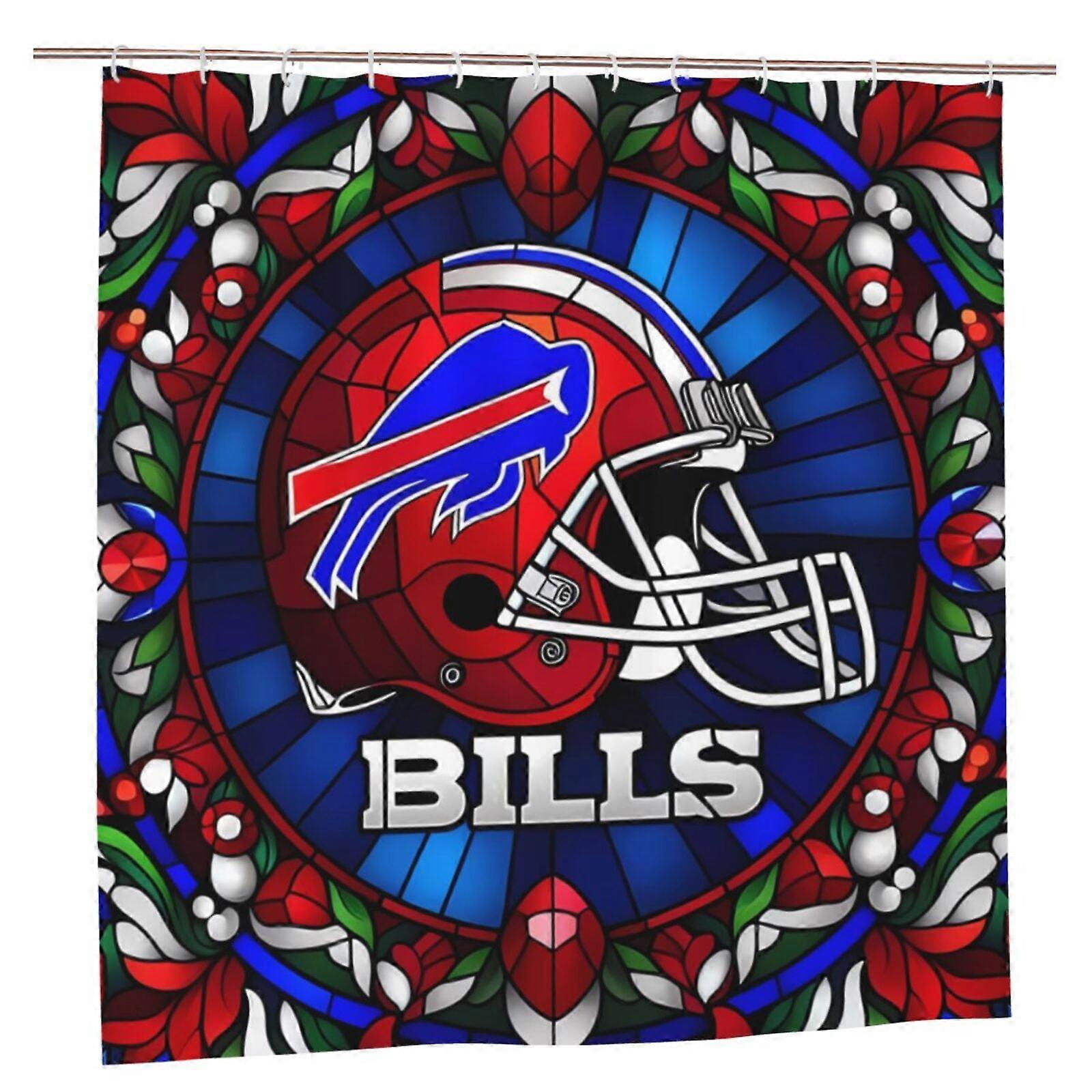 Bills Waterproof Quick-Drying Shower Curtain 60x72in with Hooks, Football Decor for Bathroom