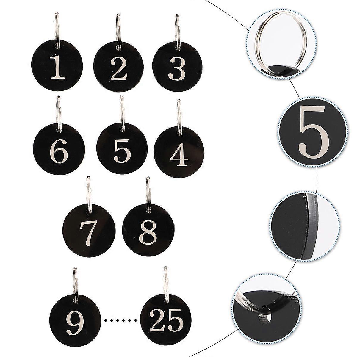 Black Acrylic Number Tag Rings for Hotel Use with 25Pcs Round Number Tags