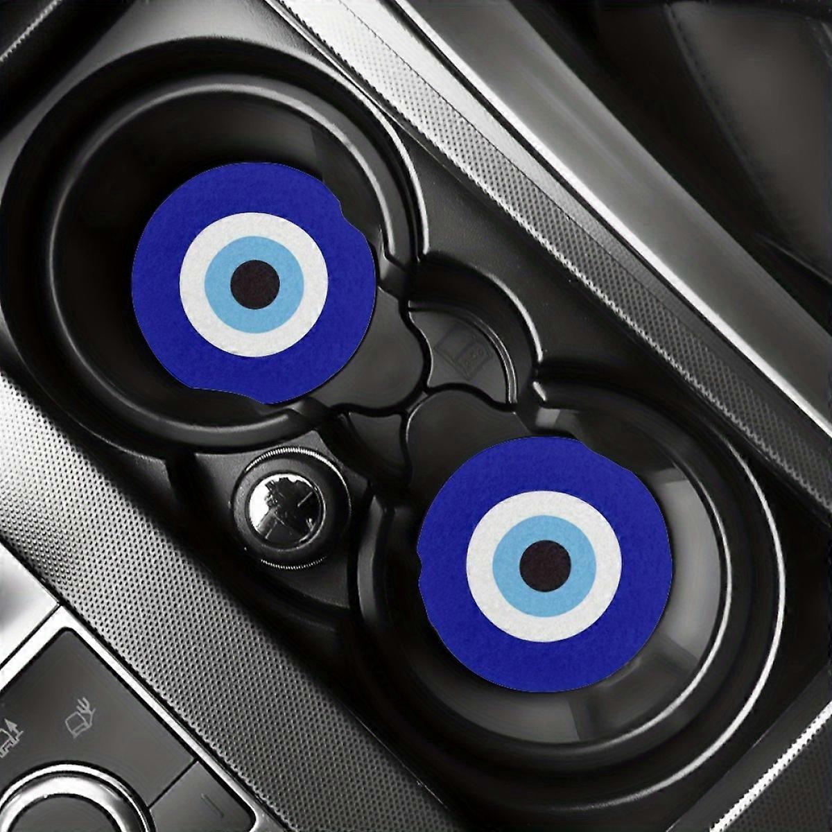 Set of 2 Blue Evil Eye Car Cup Coasters - Water Absorbent & Stylish Accessories for Women, Durable Mats for Car & Home Desk, Quick-Drying Surface Prot