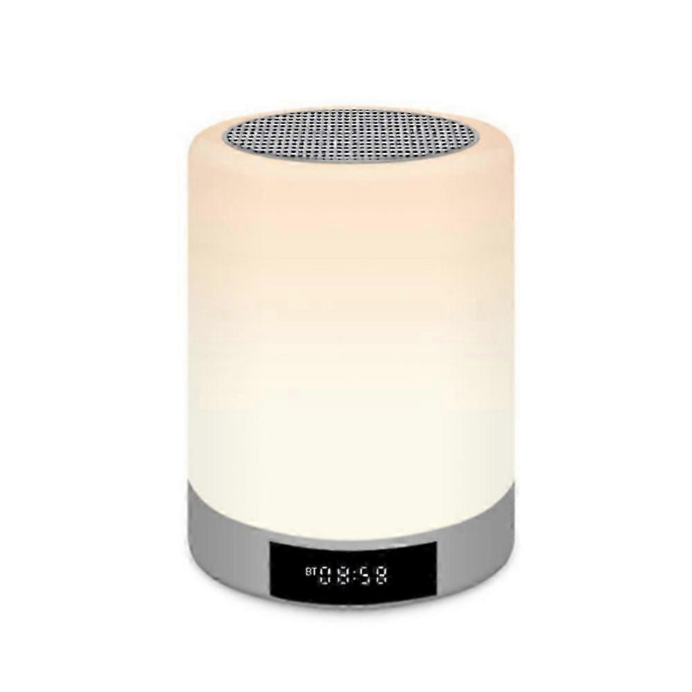 Description:Feature[Multi-function Bluetooth speaker] five-in-one function, can be used as: bedside lamp + Bluetooth speaker + alarm clock FM radio + TF card player hands-free call + child sleep aid light, just tap the top sensor to be in different modes Switch between and color, the screen displays the clock, supports the alarm function, supports Bluetooth, TF card (maximum support 32G), audio input to play music. Bluetooth connection status, support touch speaker net to answer the phone hands-free.[Touch control dimming and 7 LED light colors] briefly touch the top grille (speaker) to set the brightness to 3 intensities (low, medium and high). Touch the top grid for a long time, you can change it to 7 colors for you to choose, to fix or change the exhibition and dynamic colors, which will change according to the volume of the music.Bluetooth V4.2 and timer functionThe latest Bluetooth V4.2 + EDR technology, up to 10 meters. Pair with all Bluetooth devices, mobile phones, tablets, etc. via Bluetooth, or use the included AUX cable to connect non-Bluetooth devices (such as MP3 players). Or insert a Micro SD card to play music. After setting the timer, the bulb will automatically turn off after 20 minutes, 40 minutes, and 60 minutes.Long working and rechargeable2000mAh built-in lithium battery, long standby time. Standby for 41 hours at low light, 28 hours at medium light, and 20 hours at high light. 3W power external magnetic speaker, fine sound quality.[The best gift for everyone] Multifunctional creativity and modern design make it the best gift choice for all occasions and occasions. Suitable for bedroom, office, living room, bathroom, yoga, spa, baby room. Of course, it is also the best gift choice. This is the best gift for father, mother, brothers and sisters, couples and friends. The best gift choice in such beautiful holidays as Christmas, Birthday, Thanksgiving, Easter, Anniversary, Father's Day and Mother's Day.Specifications:Product parameters:Charging input: DC 5V=1000mAFrequency response range: 50Hz--20KHzBattery capacity: 3.7VDistortion: less than 0.5%Charging time: about 4 hoursWhole machine signal-to-noise ratio: 65dBSpeaker specifications: 52Bluetooth frequency: 2.4GHz- -2. 8GHzSpeaker power: 3WBluetooth protocol: A2DP1.2Light power: 2.4WStandard specification: V4.2+EDRMain material: ABS, PP, metal meshTransmission distance: 10 metersInput port: TF card 3.5mm AuxTransmission distance: 10 metersInput: DC 5V /1000mACharging time: 3.5 hoursMusic playback time: about 5-8 hoursProduct size: 95*122mmNet weight: 359 gramsPackage Included:1*speaker 1* manual 1* charging cable 1* audio cableNotes:Due to the difference between different monitors, the pictures may not reflect the actual color of the item.Compare the detail sizes with yours, please allow 1-3cm error, due to manual measurement.Please leaving a message before you give the bad feedback, if the products have some problems.Thanks for your understandings.