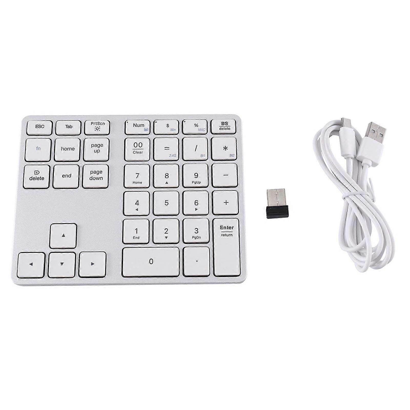 Bluetooth 5.0 Wireless Numeric Keypad 35 Keys Digital Keyboard for Android PC Tablet Laptop,Silver White
