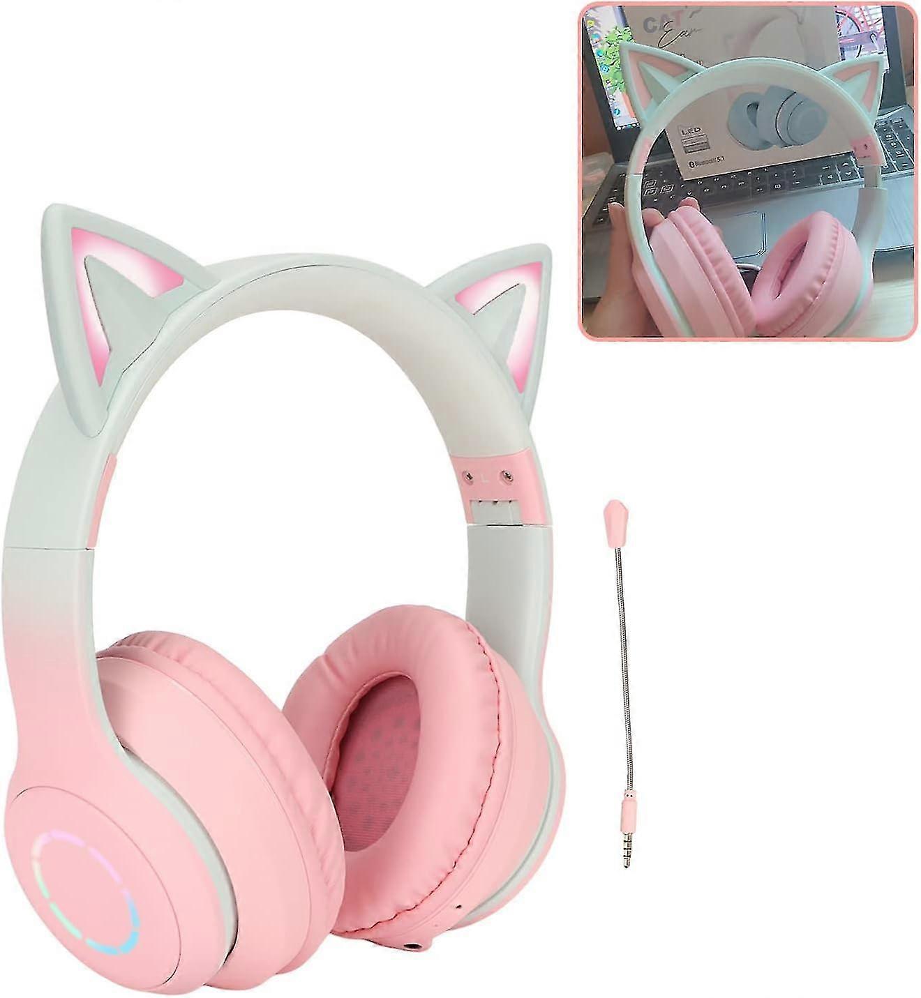 Wireless Gaming Headsets via Bluetooth 5.1/3.5mm AUX Cable, Foldable Headphones with 7 Colors LED Lights and 4 LED Modes for Girls, Adults (pink)