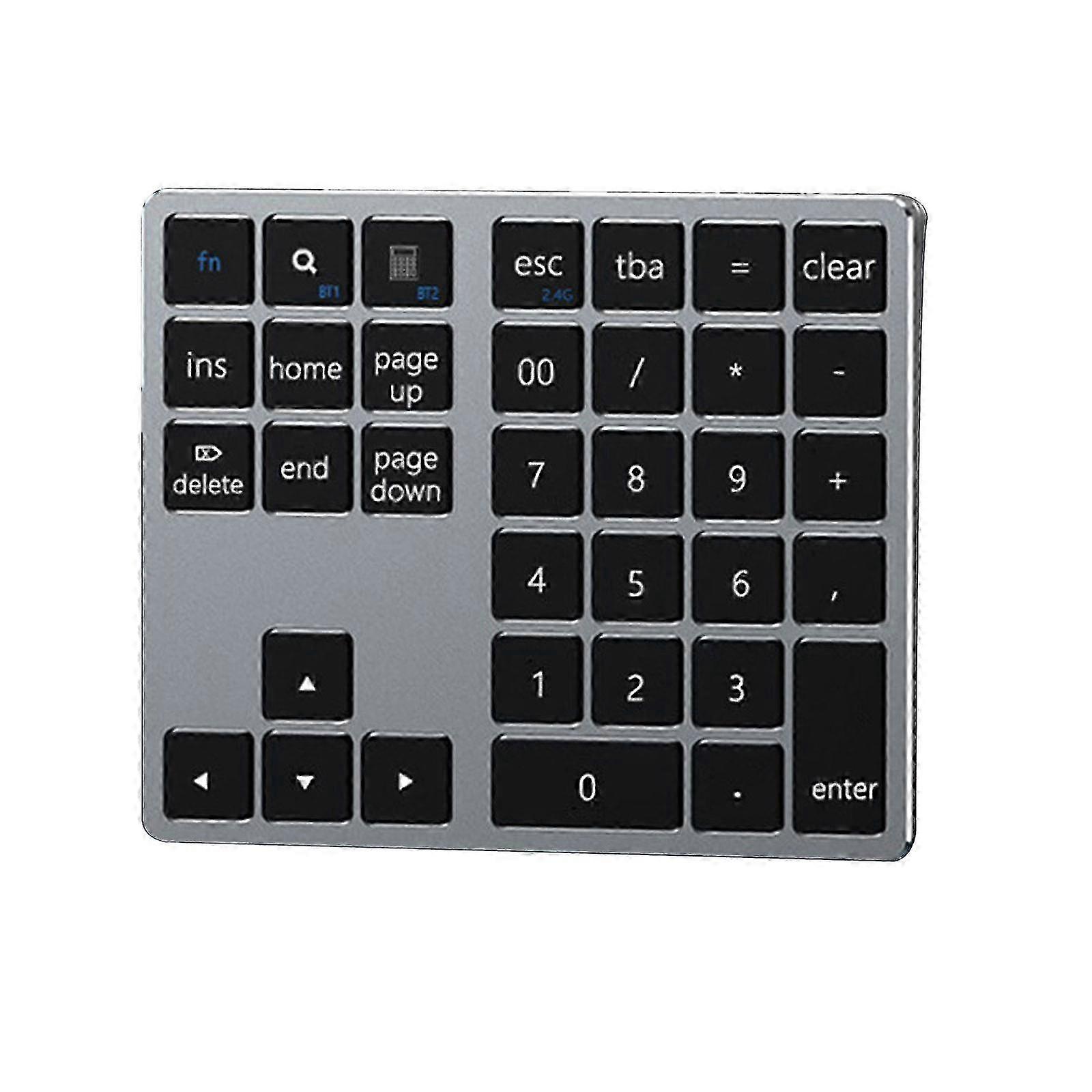Bluetooth-compatible Wireless Numeric Keypad 35 Keys Portable Rechargeable Number Pad for Laptop Desktop PC Notebook silver gray