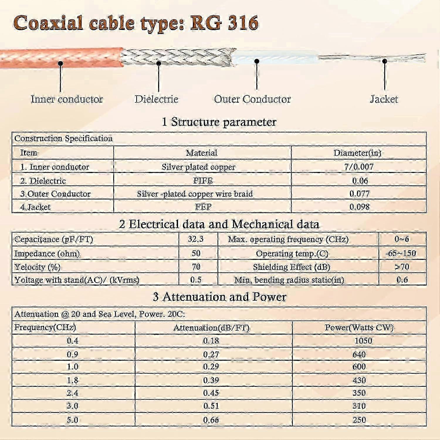 BNC Cable 10FT, 50 Ohm BNC Cable BNC Male to Female Bulkhead Mount RG316 Coax for Wireless Microphone System