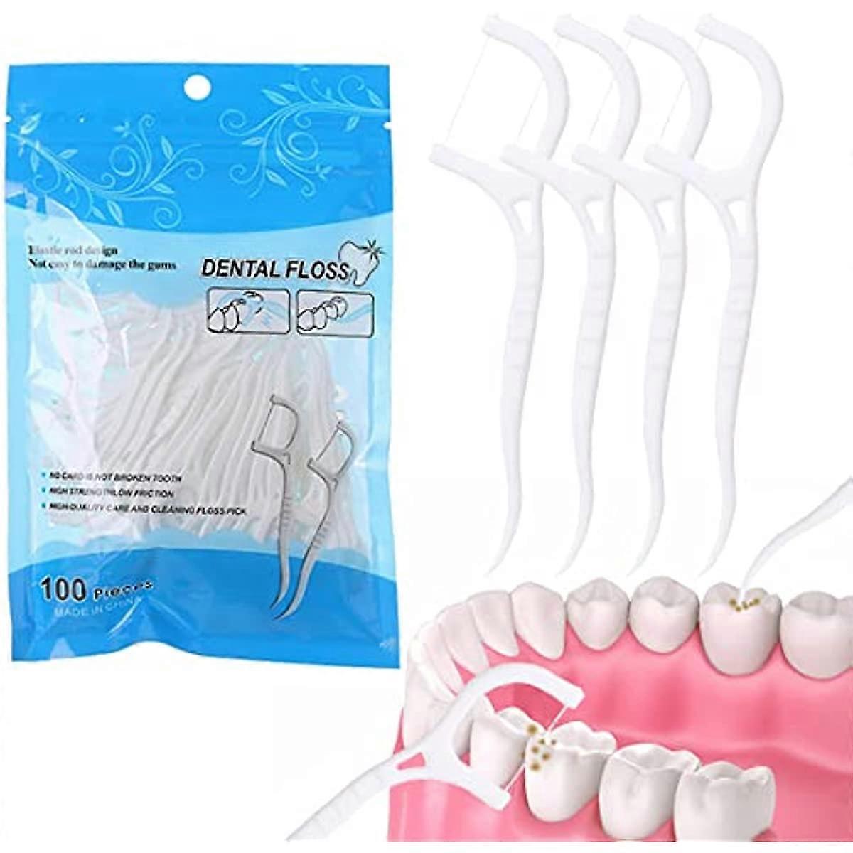 BODYA 100 Pieces Dental Flosser Sticks Plastic Tooth Floss Picks 2 in 1 Dental Interdental Brush Toothpicks Oral Gum Teeth Cleaning Care Tool for Heat