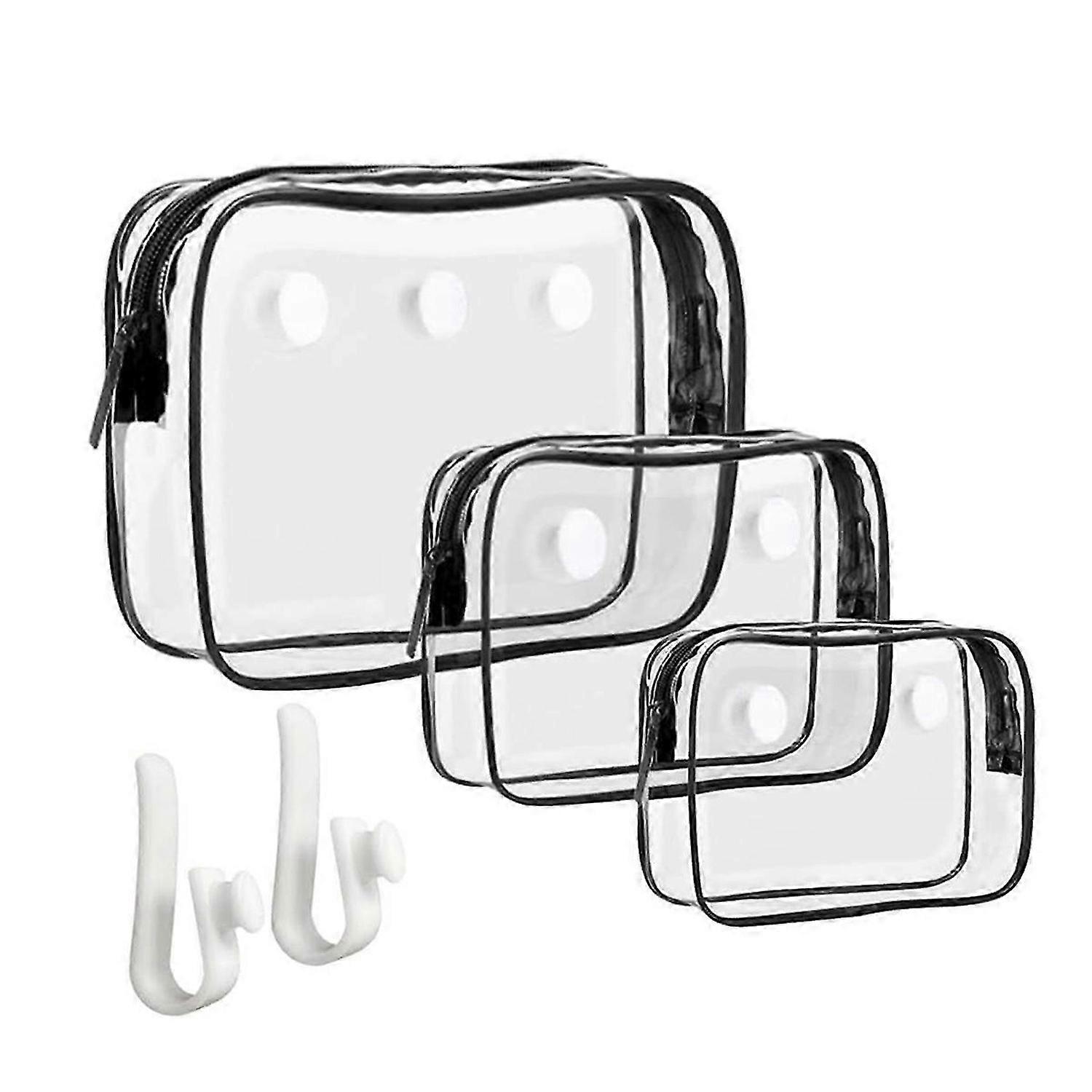 The transparent cosmetic bag is made of polyvinyl chloride (PVC) waterproof and material, the bag is strong and secure, and the transparent design allows you to easily find items and storage locations, which can help you save valuable time. Our clear travel bags are available in large, medium and small sizes. Our clear cosmetic bag has a unique button design, you can use it to match your rubber beach bag, it is waterproof and sandproof, can protect your valuables such as mobile phone wallet, and can also increase the capacity of your beach bag. This travel bag is , easy to clean and has a zippered top for easy packing and ventilation. perfect for holidays, travel and the bathroom, it's a great choice for storing personal toiletries.<br><br>Colour:Black Material:pvc<br><br>Package Contents: 1 set * for <br><br>Only the above package content, other products are not included. Note: Light reflection and different displays may cause the color of the item in the picture a little different from the real thing. The measurement allowed error is +/- 1-3cm.