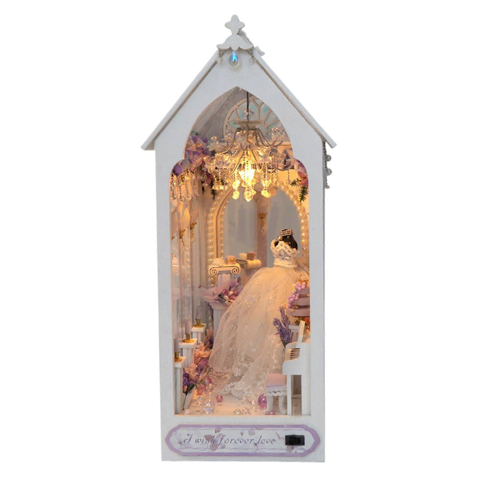 Book Nook Kit: Wooden 3D Puzzle Miniature House Bookend with LED Lighting for Living Room and Study