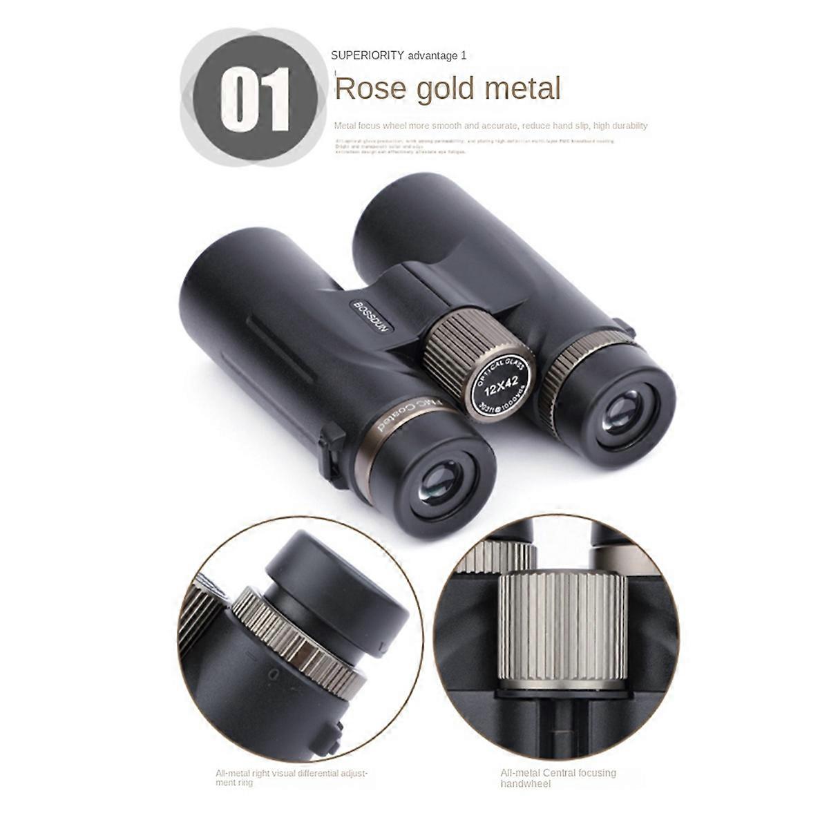 Bossdun Binoculars HD 12X Telescope with Phone Holder Black
