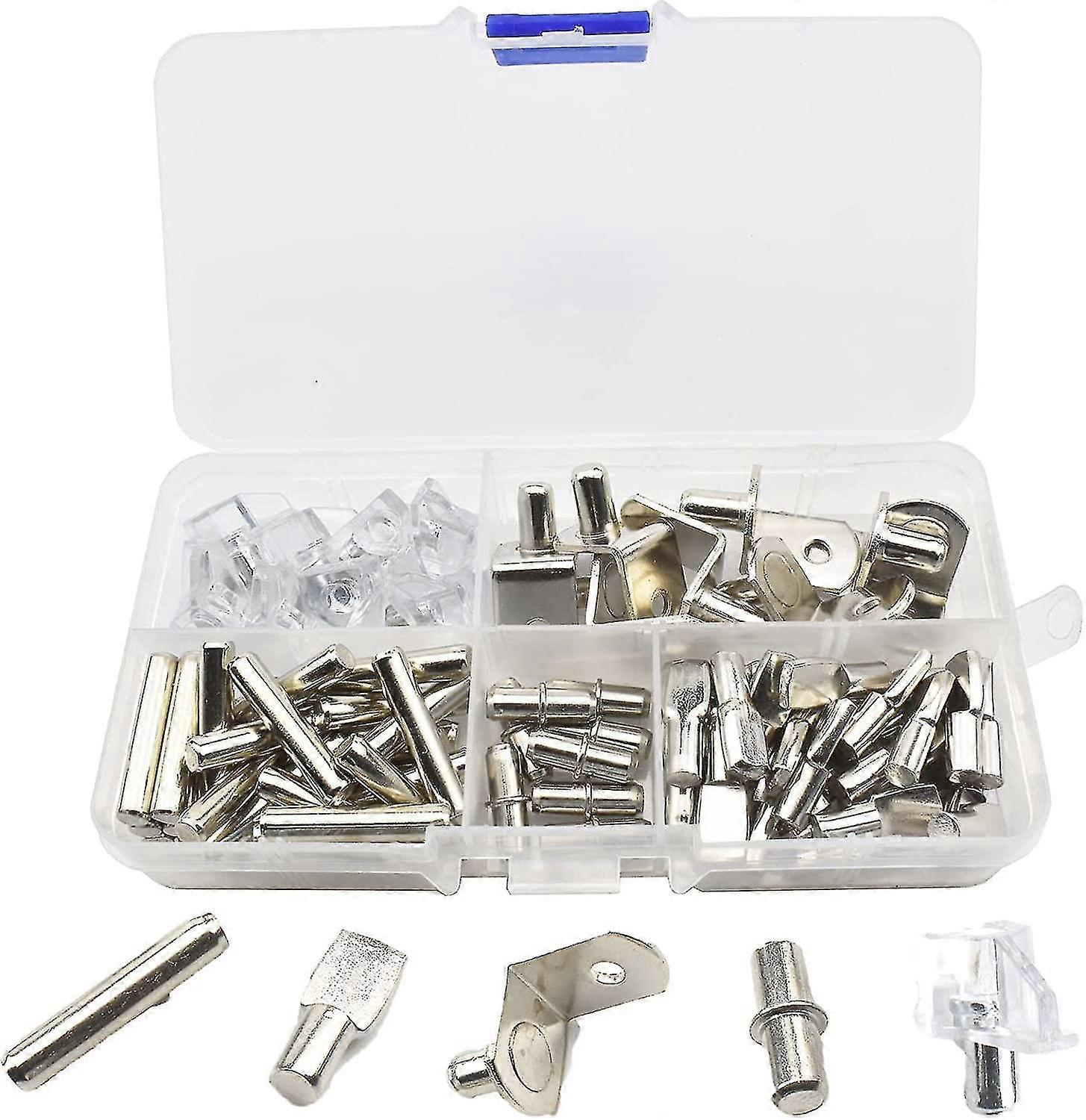 Botao 80 Pcs, 5 Styles Nickel Plated Metal Shelf Pins, Shelf Support Pins Support Pegs, Shelf Support Pegs Cleats, For Cabinet Furniture