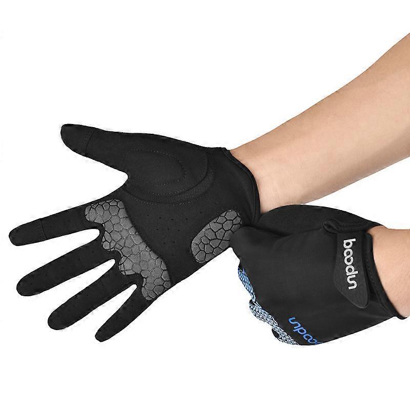 Boton new long finger bicycle gloves breathable shockproof palm pad outdoor cycling gloves Dark grey S