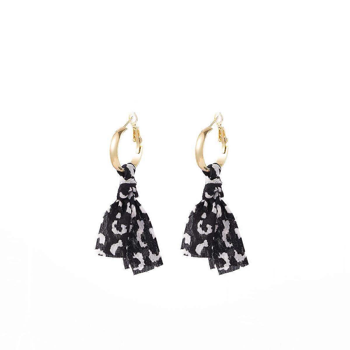 Bowknot Earrings, Retro Leopard Print Fabric Long Elegant Hong Kong Style