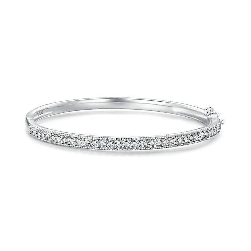 BSB130-17 Sterling Silver S925 White Gold Plated Zircon Thin Glitter Bracelet
