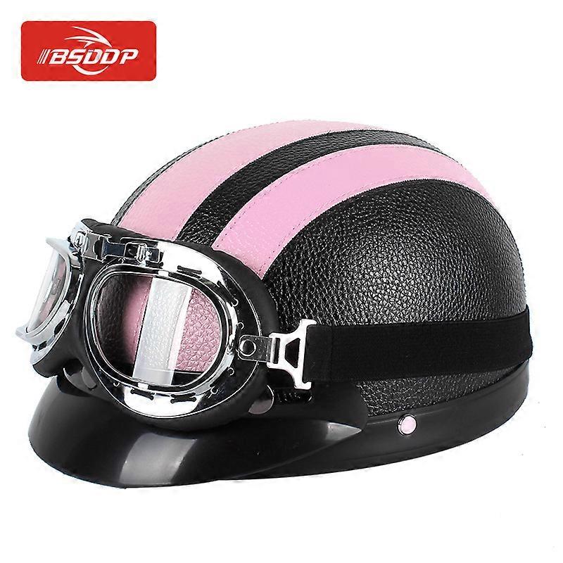 Bsddp Motorcycle Helmets Motorcycle Pu Helmet With Goggles Summer Sunshade Breathable Men And Women Riding Half Helmet Motorbike