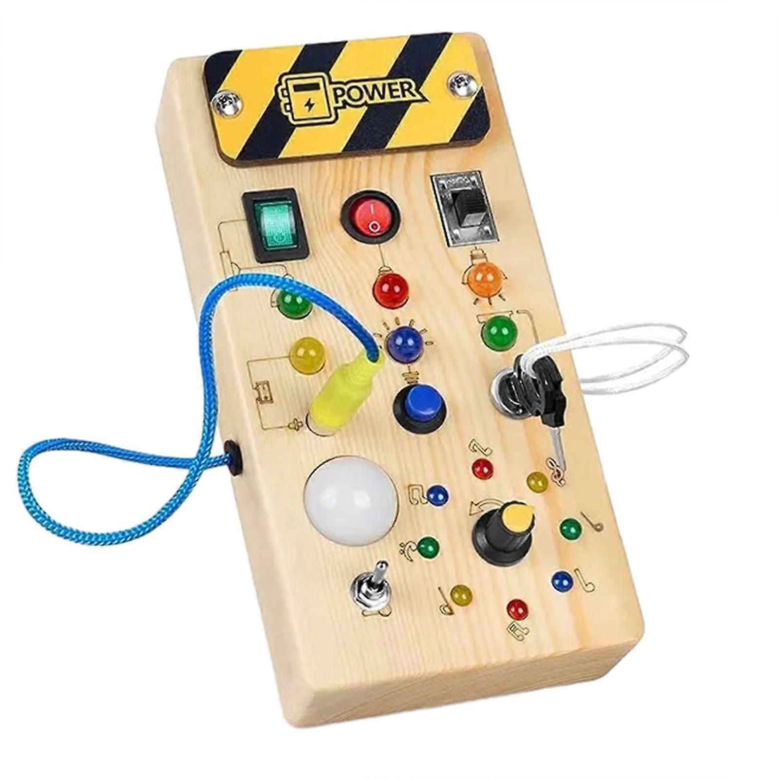 Features: _x000D_High-Quality Material: This educational toy is made of high-quality material, which is wear-resistant and durable, not easy to break, and can be used for a long time._x000D_SKILL DEVELOPMENT: This fun wooden busys boards toy is a tool for developing fine motor skills, hand-eye coordination, color recognition and cognitive abilities._x000D_EASY TO PLAY: This wooden busys boards is so easy to play that children can explore and solve problems with their hands while interacting with the various switches and lights on the board._x000D_Portable design: This baby busys boards is small and lightweight, making it easy to carry on road trips or plane trips, preventings children from getting boreds during the trip._x000D_Great gift: This educational toy can cultivate children39;s logical thinking and hands-on skills, and is the best gift for family member or friends with children._x000D_Notice:_x000D_1.Actual color may be slightly different from the image due to different light effect_x000D_2.Please allow 1-3cm deviation due to manual measurement_x000D_ _x000D__x000D_Material: wood_x000D_Size: 10.3*3*18.5cm_x000D_Suitable age: 3 Years Old _x000D_Battery: 2*AAA batteries not included_x000D__x000D_Package List:_x000D_1 x Toy