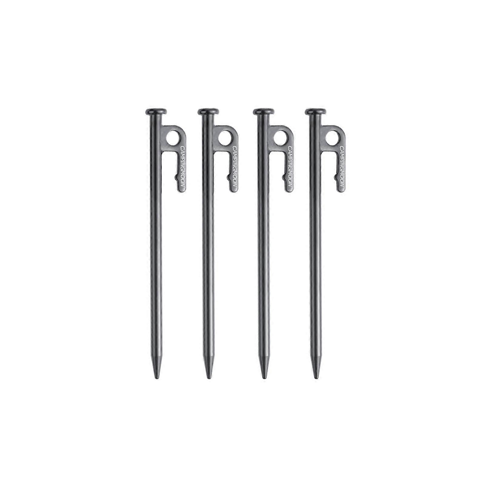 Campingmoon Carbon Steel Tent Pegs 20cm Heavy Duty S45C Black Coating Pack of 4 for Hard Ground Outdoor Use