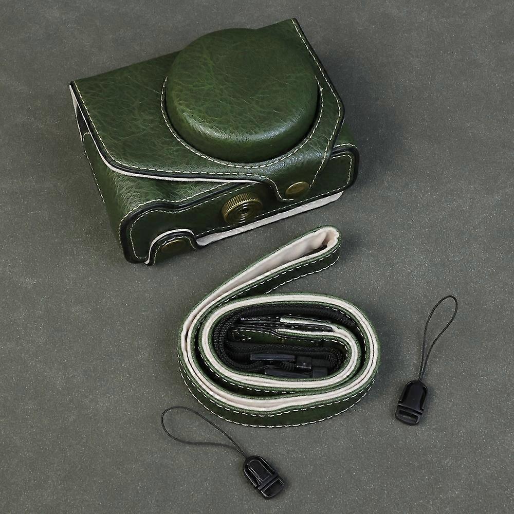 For Canon PowerShot V1 Camera Case Portable Leather Camera Protective Cover Without Battery Opening Green