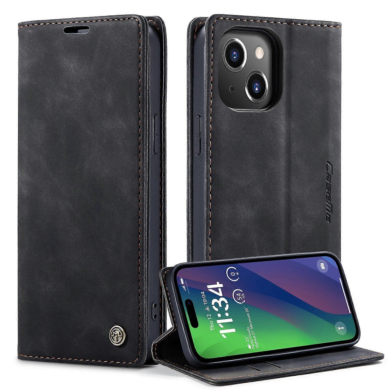 CASEME 013 Series For iPhone 15 Leather Wallet Phone Case Flip Stand Drop-proof Cover