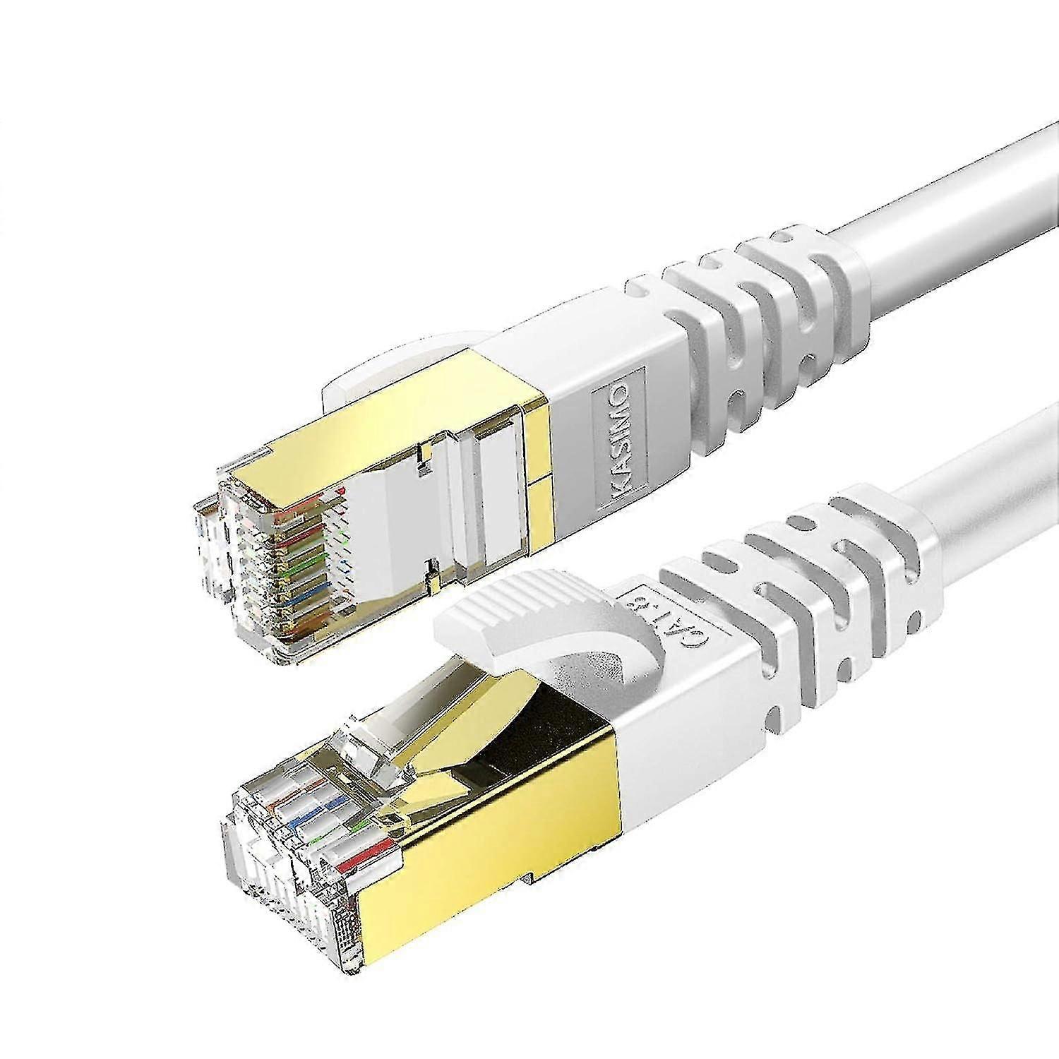 HIGH SPEED ETHERNET CABLE: KASIMO CAT 8 Ethernet Cable support bandwidth up to 2000MHz and up to 40Gbps data transmission speed that is 4x than the frequency of CAT 7 cable, so you can connect to your LAN/WAN segments and networking gear at maximum speeds and surf the net,playing games, stream videos,audio,music and other data at high speed without worrying about lagging and waste time for waiting. EFFICIENT & RELIABILITY & TIDY: CAT 8 Ethernet Cable extremely fastest than the Cat7/Cat6/Cat5 traditional Ethernet cable in the market.You don't worry about slow internet speed and lagging when gaming, working and surfing the net any more. So WHY not choose KASIMO CAT8 Cable to improving your working efficiency now We offer different length of cable, you can choose the best for your device without worrying about cable mess. STABILITY & FLEXIBLE & DURABLE: KASIMO Ethernet patch cable features: 1.Gold-plated RJ45 connector, more sensitive and stable; 2.4Pairs 100% pure & thick Copper wires make sure to reach CAT8 Standard--2000MHz bandwidth and 40Gbps high speed data transmission; 3. Anti-interference design-- Shielded Foiled Twisted Pair(SFTP) can reduce the interference & signal attenuation effectively; 4. The copper wires are wrapped by 0.8mm thickness durable outer PVC jacket which is more durable, flexible HIGH QUALITY: Rounded & 6.5mm diameter, Cat8 26AWG standard. Comparing with other 32AWG ethernet cable , 26AWG is more thicker, speed is more faster and stable than 32AWG. RANGE OF APPLICATION: KASIMO CAT 8 Ethernet patch cable good for Routers, Xbox360, Network Printers, Computer data center, Cloud server center, Cloud server, Enterprise Server and Enterprise Ethernet switches and more.