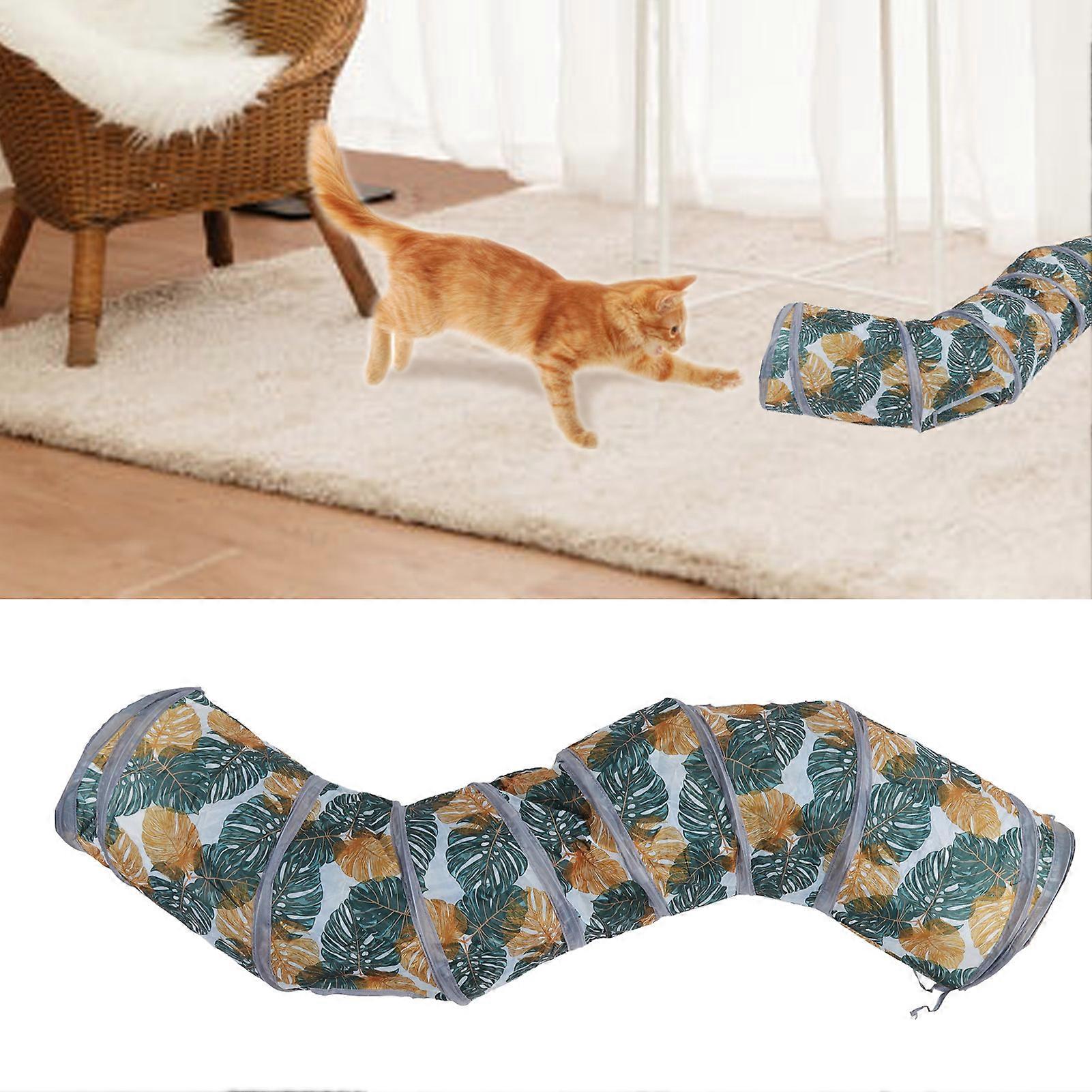 Cat S Tunnel Tube Wild Leaf Print Thicken Collapsible Portable Little Pet Tunnel for Small Pets