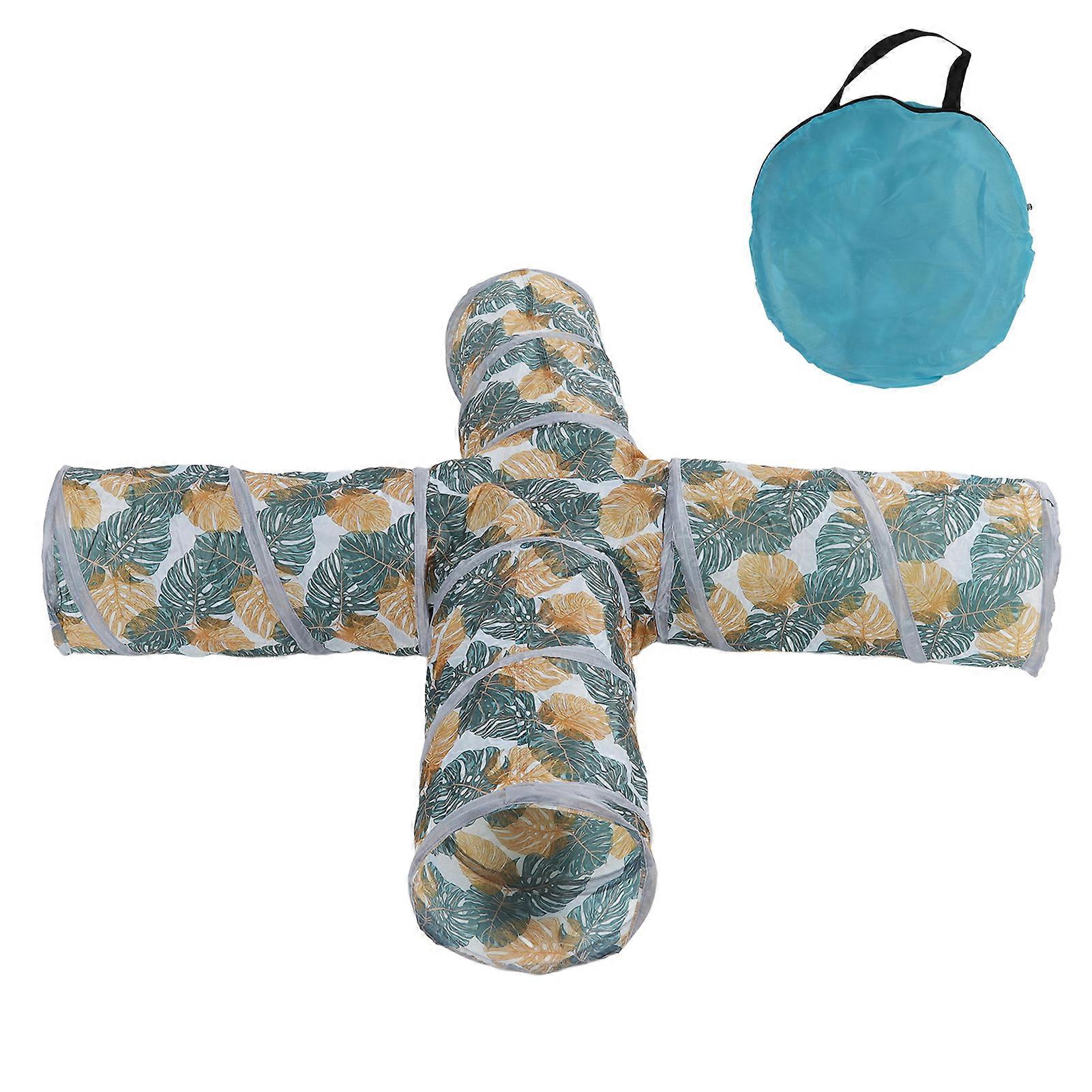 Cat Tunnels Collapsible Printed 4 Way Cat Tube with Storage Bag for Pet Play Puppy Kitten