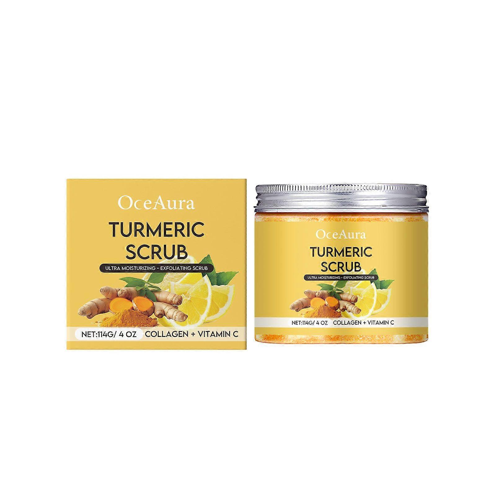 DEEP CLEANSING SKIN: Turmeric Exfoliating Scrub helps to deep clean pores, soften skin, exfoliates dead skin and unclogs pores. While helping skin reduce blackheads, acne and dark spots, even out skin tone. ORGANIC PLANT INGREDIENTSOur Body scrubs are carefully selected these natural ingredients like turmeric, coconut oil, aloe vera, VC, walnut shell powder and strawberry extract. These high-quality ingredients can give your skin natural treatment and restore youthful state. The main turmeric and VC ingredients are rich in antioxidants, which can change the state of the skin from the inside out and you can enjoy the natural beauty. MILD AND NON-IRRITATINGThe natural plant formula and delicate walnut shell powder and strawberry extract help exfoliate the skin. Coconut oil and aloe vera can effectively moisturize and soothe the skin, mild and non-irritating, suitable for all types of skin. HEALTHY AND SHINY SKINVitamin C Exfoliating Scrub effectively help removes toxins from the skin, evens complexion improve dull skin and deeply nourishes the skin. Restores your skin to a healthy condition and luster. SPA TREATMENTSLet's say goodbye to rough scrubs to avoid hurt the skin. Using natural, safe and gentle ingredients, our scrub can help the skin effectively exfoliate and form a protective layer, making it easy to use for a spa treatment at home.