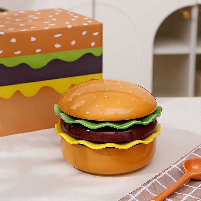 Ceramic Dinnerware Set with Creative Hamburger Design, Microwave Safe Stackable Plates and Bowls