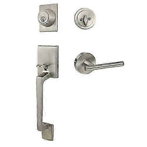 Churchill Satin Nickel Handleset with Kain Interior Lever (We Key All Locks Alike for Free)