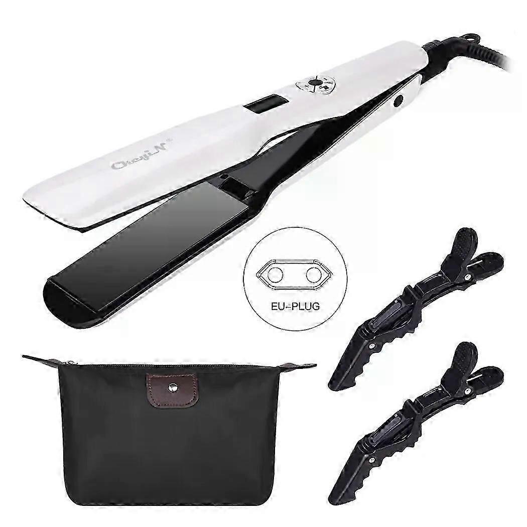 CkeyiN 44mm Tourmaline Ceramic Hair Straightener LCD Display Fast Heating Flat Iron Adjustable Temperature Straightening Iron